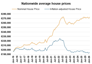 Between January 2023 and January 2026, average house prices increased by 4.9%, compared to CPI growth of 10.4%.