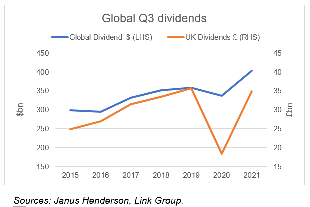 Both Janus Henderson and Link Group recently published their latest dividend reports covering the third quarter of 2021.