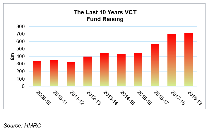 At the end of last year, HMRC published details of how much money was raised by VCTs in 2018/19. At £716m, the figure was the highest since 2005/06, when a temporarily higher rate of tax relief was on offer.